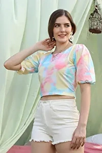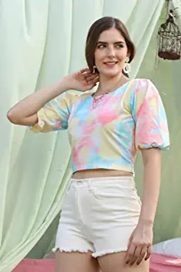 GRECIILOOKS Women's Tie-Dye Puff Sleeve Tops for Women | Summer Wear Ruffle Tops for Women Crop